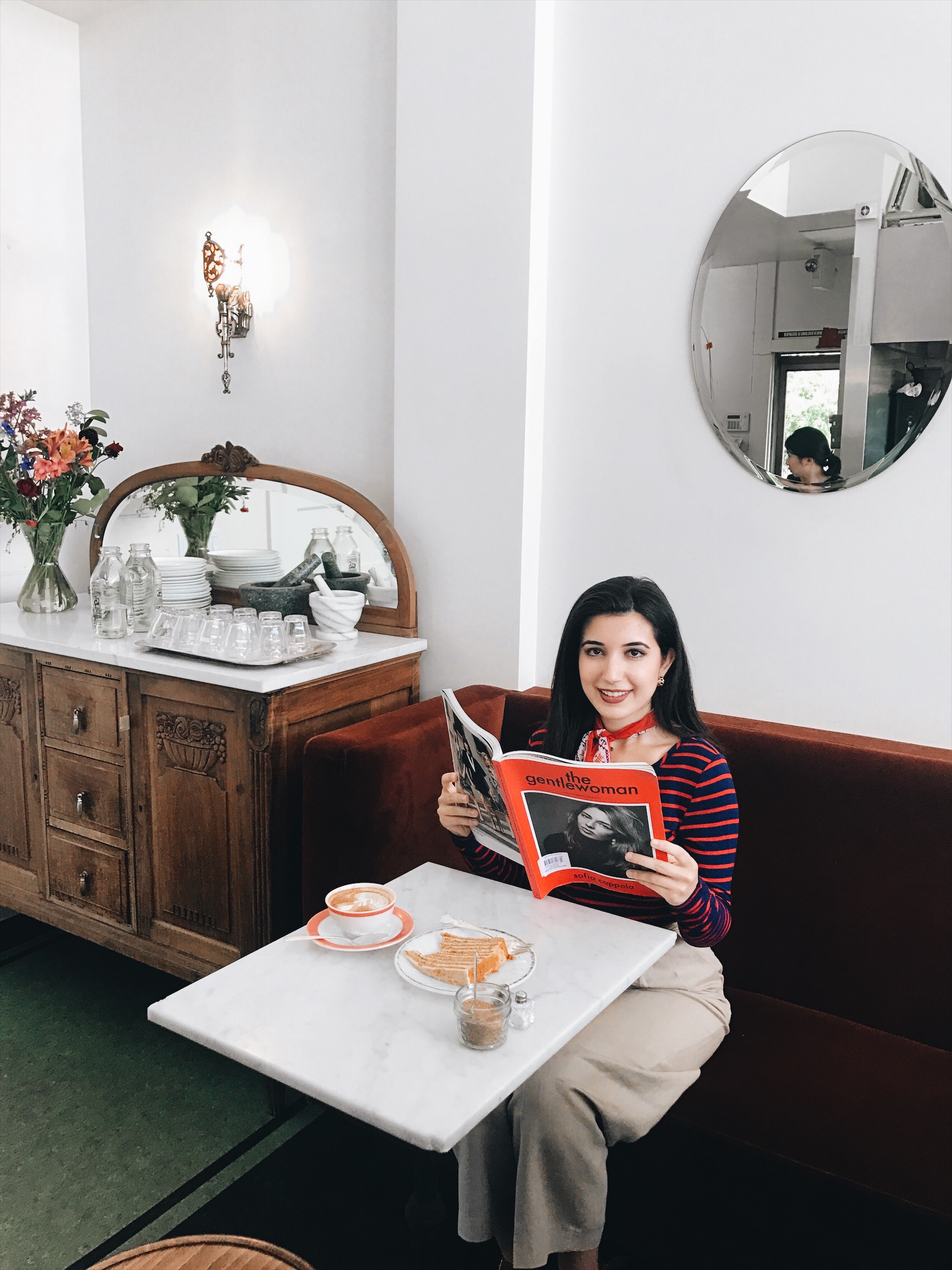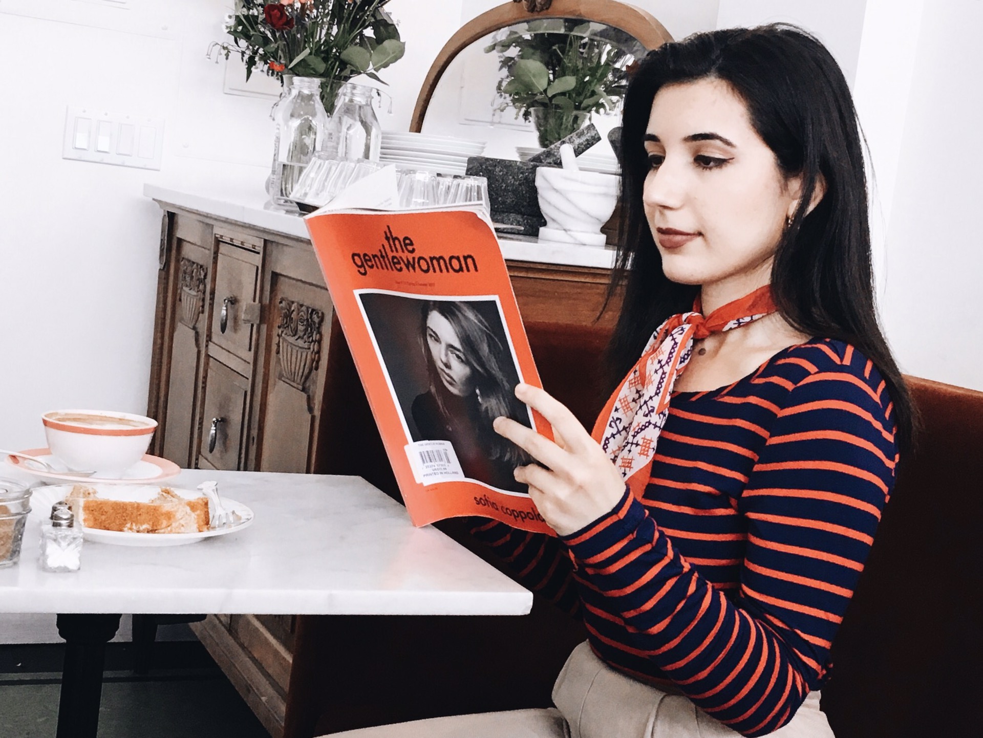 I am thankful to have a family who humors my vintage daydreams when going on day trips with them and cafes that keep the retro nostalgia alive. 20th Century Café is this lovely little Russian café that serves boutique sized pastries on what looks to be your grandma’s crockery. This sort of old-world charm is mixed with a millennial favorite: white marble tables and luxurious red velvet booths. The eatery is filled with folks quite like myself, highly intrigued by either a newspaper or magazine while sipping on cappuccinos. I’ve recently fallen in love with The Gentlewoman Magazine, that I happily curled up with in between bites of cake and conversation with the fam.
