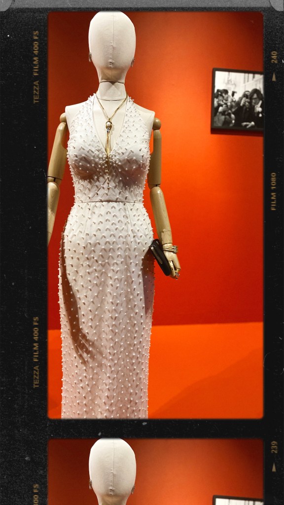 Sure, House of Gucci is drawing both admiration and some criticism right now, but whichever camp you fall into, this is undeniable: the film and the festivities around the luxury brand this past month have put new pep into our monogrammed loafer steps. I’ve had lengthy conversations about The House of Gucci’s fashionable force over the public with coworkers, family, friends and even strangers. I’ll never forget what this one woman at the Gucci Gardenia Pop-up (which practically looked like a pink gingerbread house outside of the colossal Christmas tree at the Grove) said to me: “I haven’t seen Los Angeles visitors and natives get this excited about experimenting with their personal style since the pandemic began. People have been coming here dressed to the nines in looks inspired by the movie, and it’s inspiring me too!” It’s a phenomena I’ve also felt in my veins, and translated to my vestments: I practically cat walked across the FIDM museum galleries filled with looks from the film, the walls encapsulated in rouge.