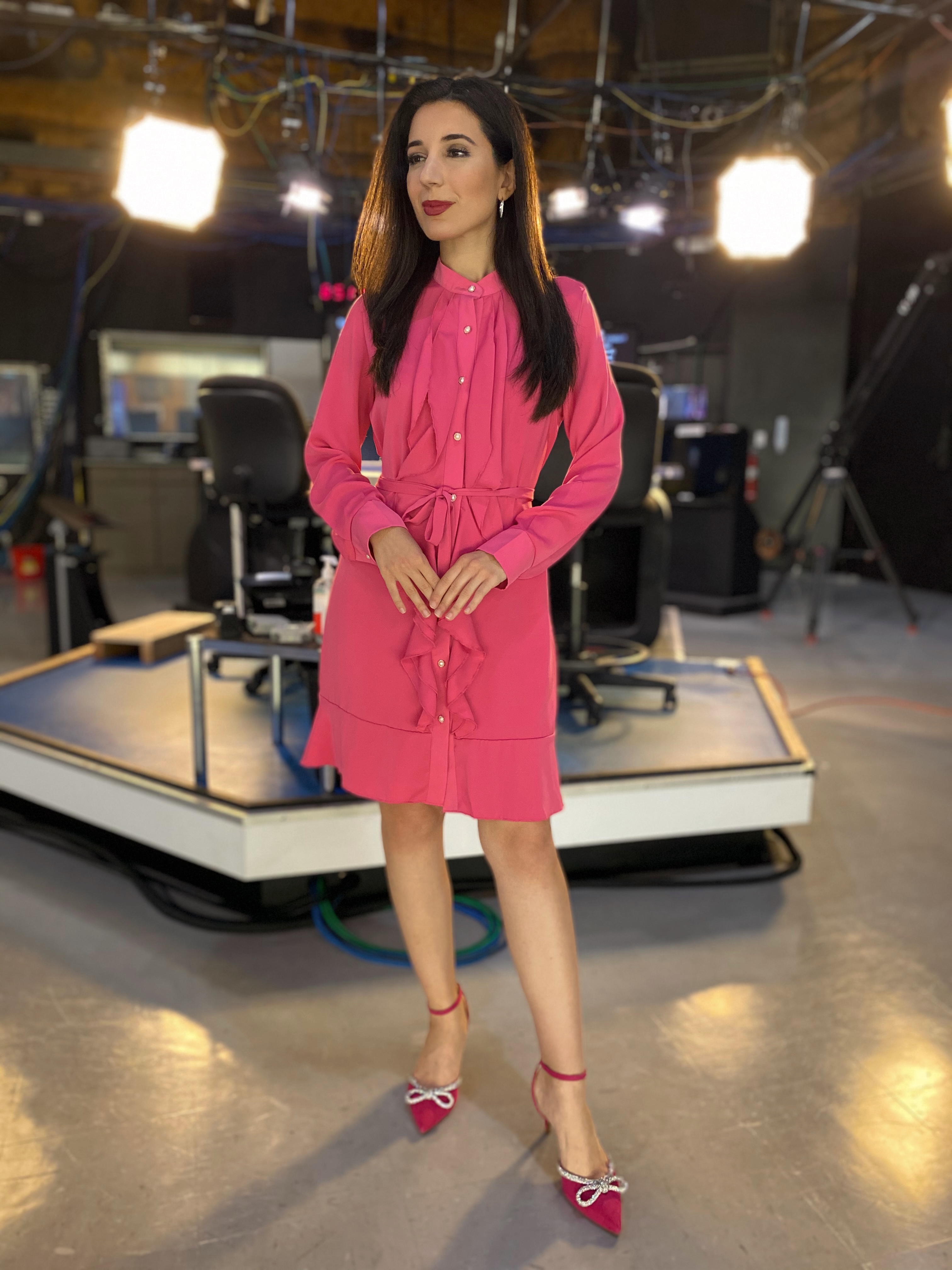 I’ve worn these looks, from power blazer, to statement dress, during some of my biggest career milestones thus far. The shoulder pads of this oversized fuchsia blazer made me stand up even straighter, as I squared my shoulders toward the first lady of the United States, speaking at a podium in an intimate press room. This was while covering her visit, and speech, during a naturalization ceremony at the Cesar E. Chavez National Monument. And this off-the-shoulder Chiara Boni La Petite Robe number, with a bustle in the front? The magenta piece, was a hug of confidence, while anchoring the morning news and weather simultaneously. And that fuchsia mid-length dress with a sweetheart neckline, I wore while being interviewed on television about my career.