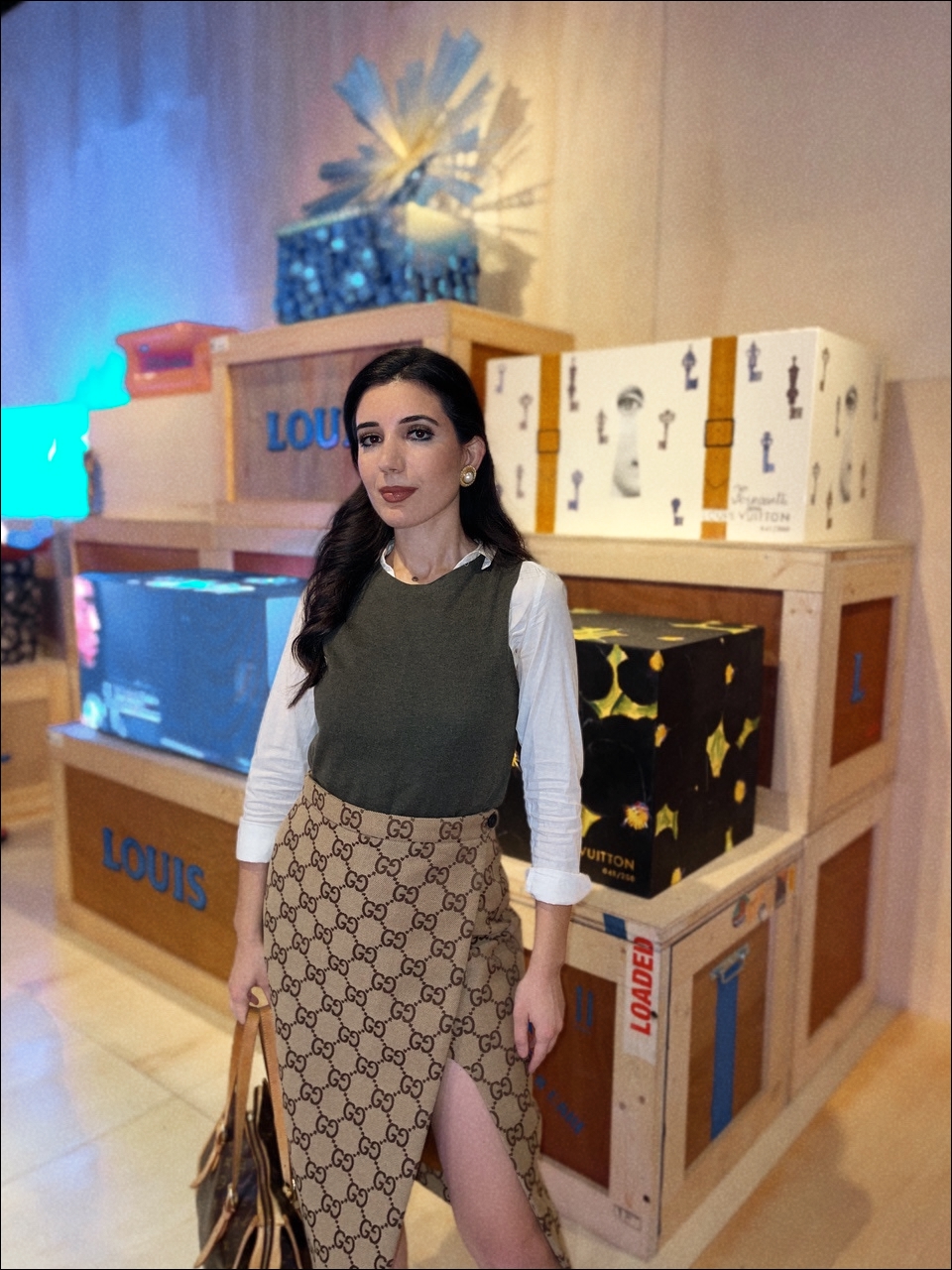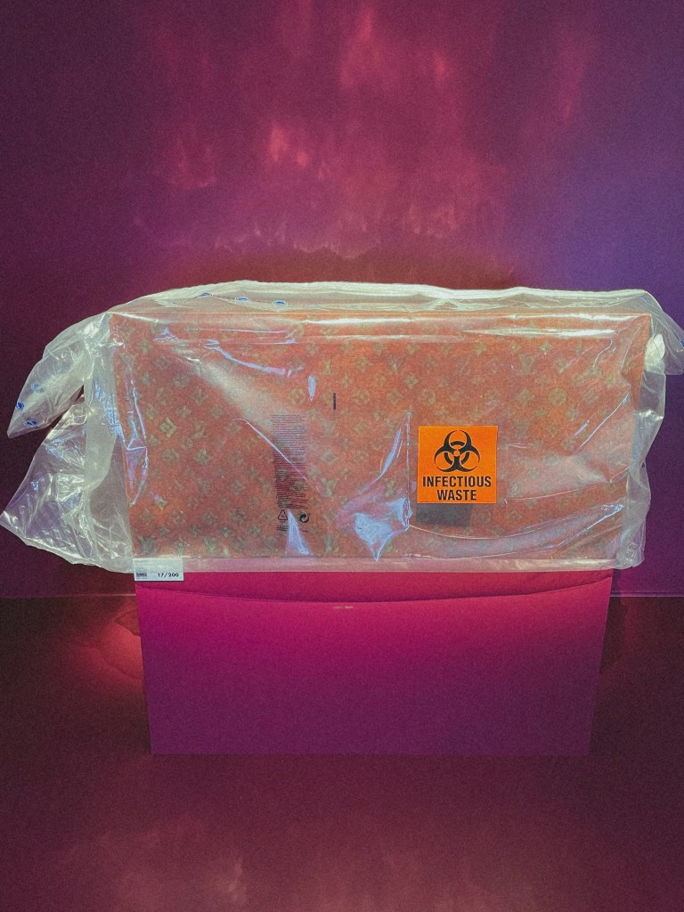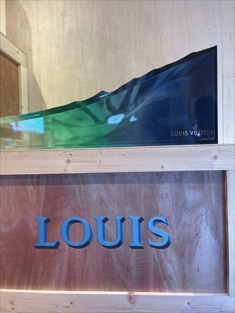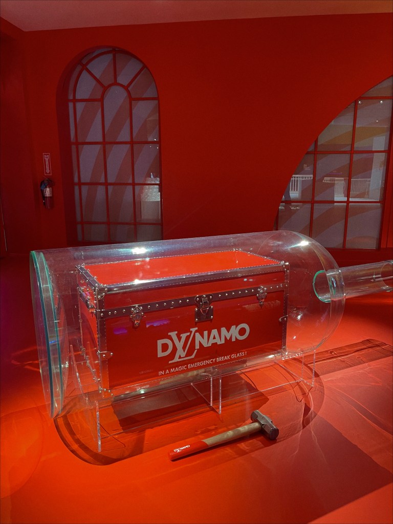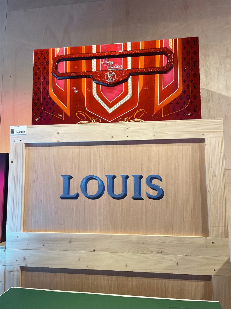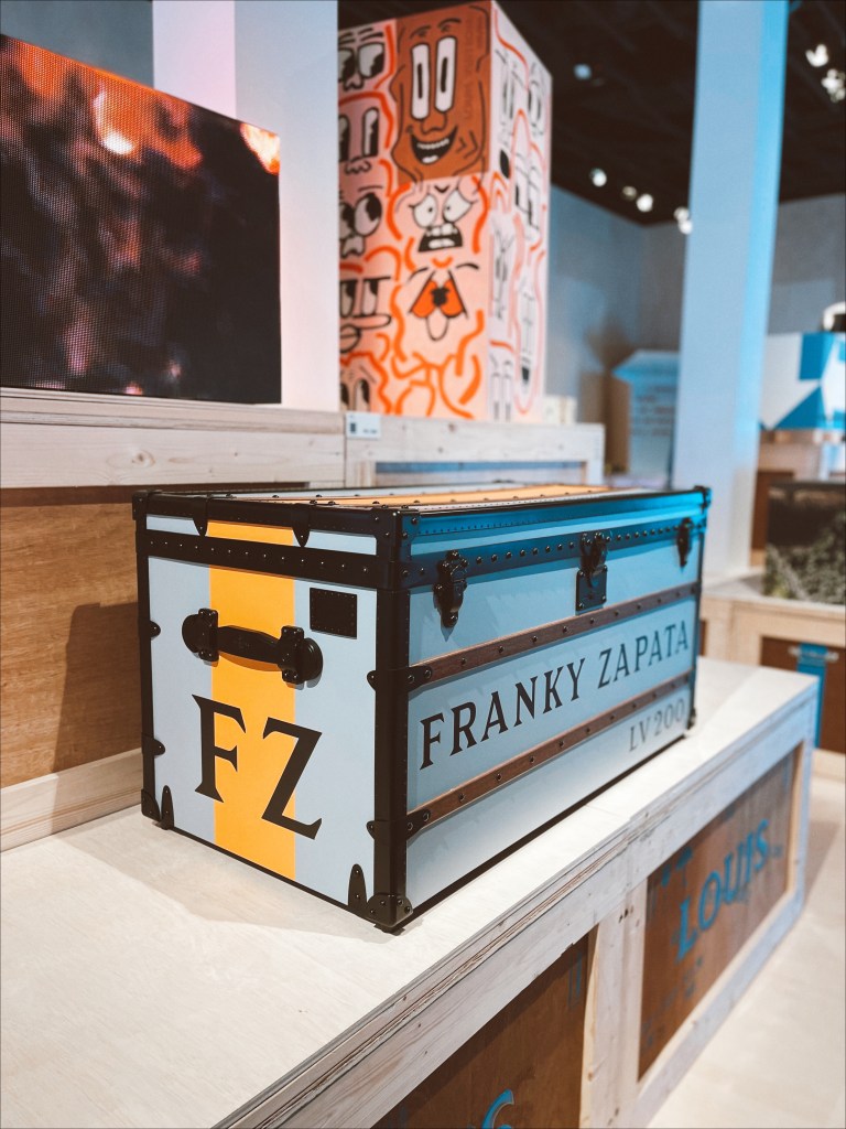 Sure, the endless picture-opportunities are a draw, or the chance to see original pieces from some of the most famous figures in pop culture today, like K-pop group BTS, Makeup artist, Pat McGrath, whose canvases are the faces of many A-list celebrities, or megastar actress Robin Wright. But some of my favorite renditions on display were very personalized definitions of defying the odds: Magician Dynamo, known for getting objects seemingly impossible, into a bottle, pushed a hot-red LV trunk, inside one. Pilot and inventor, Franky Zapata, designed an airborne piece of luggage that does not even need to be put on an airplane to fly. Theo Curin’s blue-green ombre trunk, represents the calm waters of an indoor pool going into an unpredictable, oceanic wave. Despite his fear of water, Curin overcame that personal wave, five years after having to amputate all four of his limbs, as a result of Meningitis. Curin not only swam, but thrived: becoming champion of that aquatic sport in the Paralympics, an accomplished model, and actor.