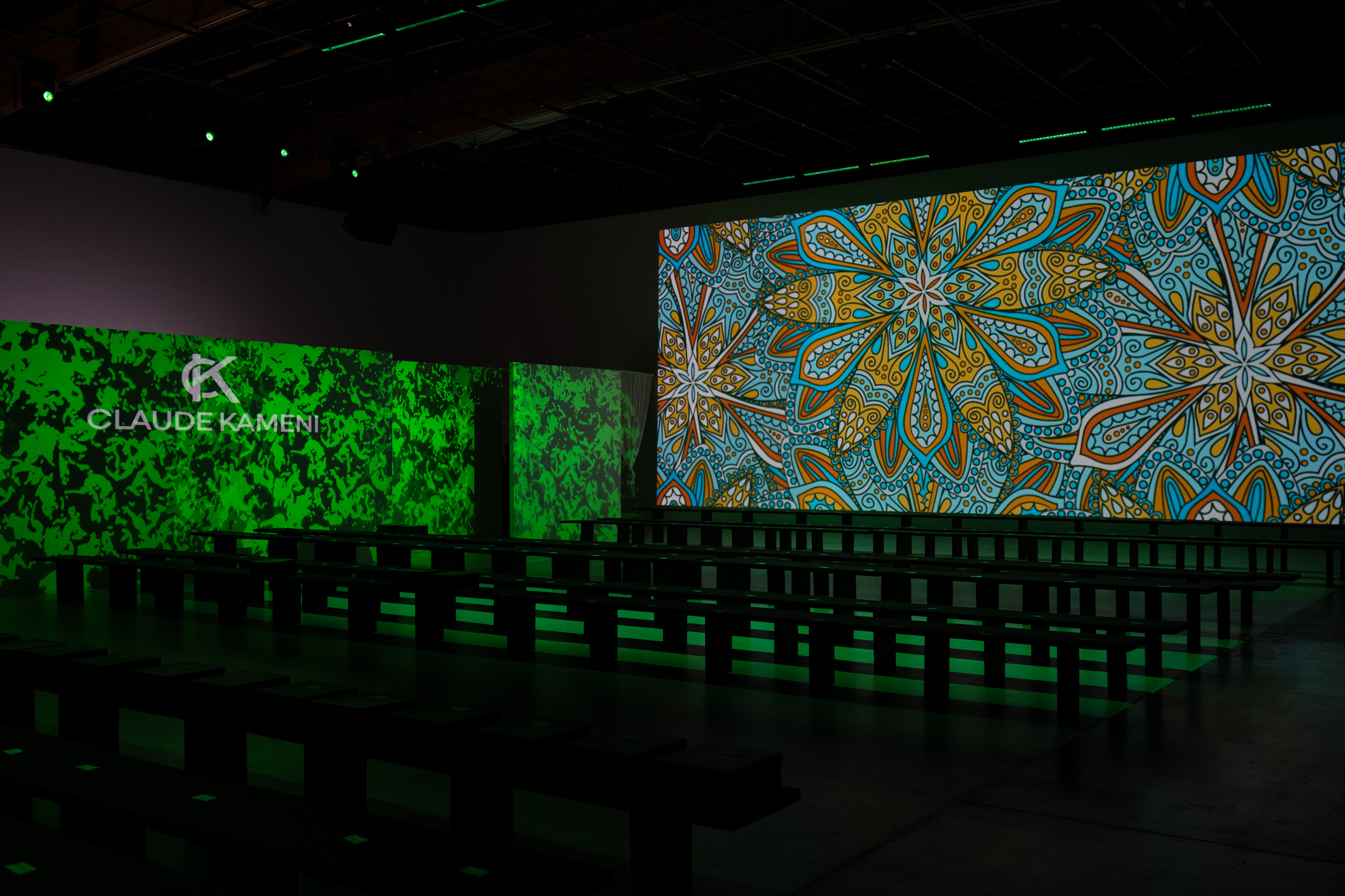 Walking into The Gallery at Nya studios was like stepping inside a kaleidoscope: Layers of flowers in orange, baby blue, and white bloomed on the walls in an otherworldly projection.